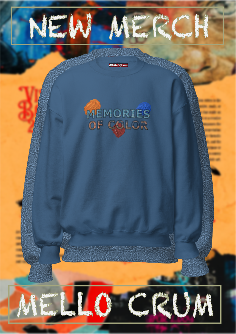 design with cover art underneath the lettering and spots of paint pressed on, with additional "mello crum" custom logo printed inside.